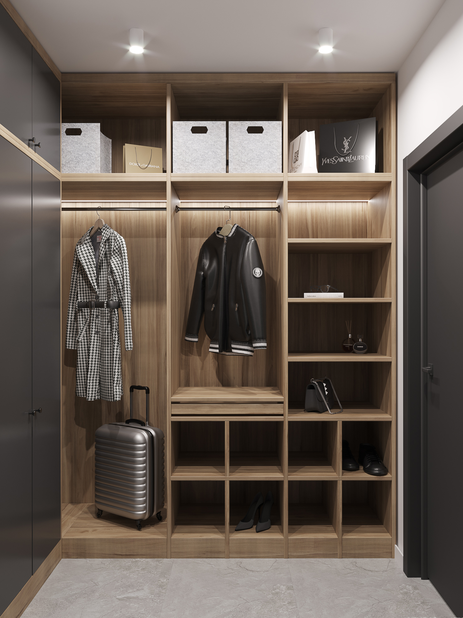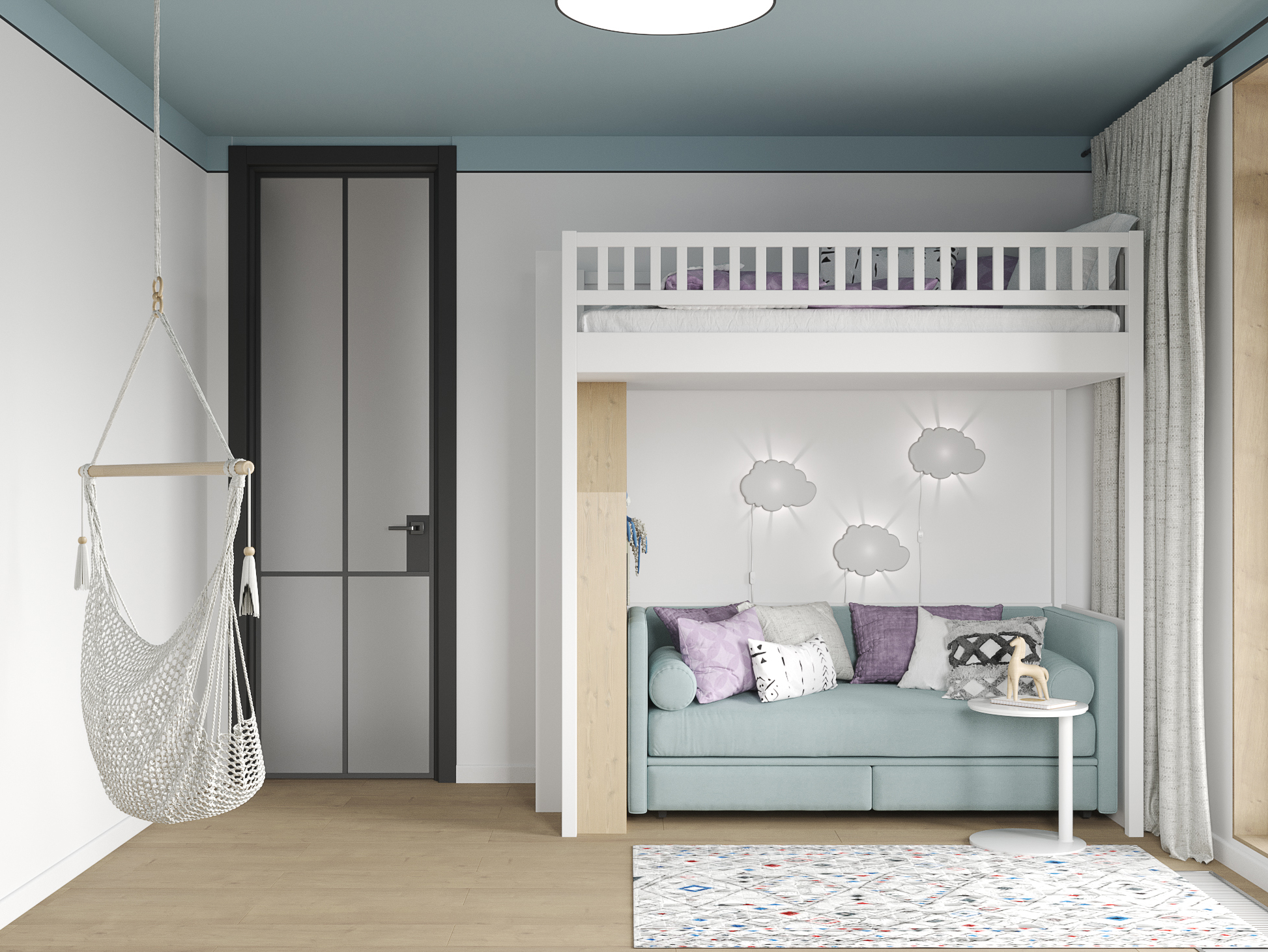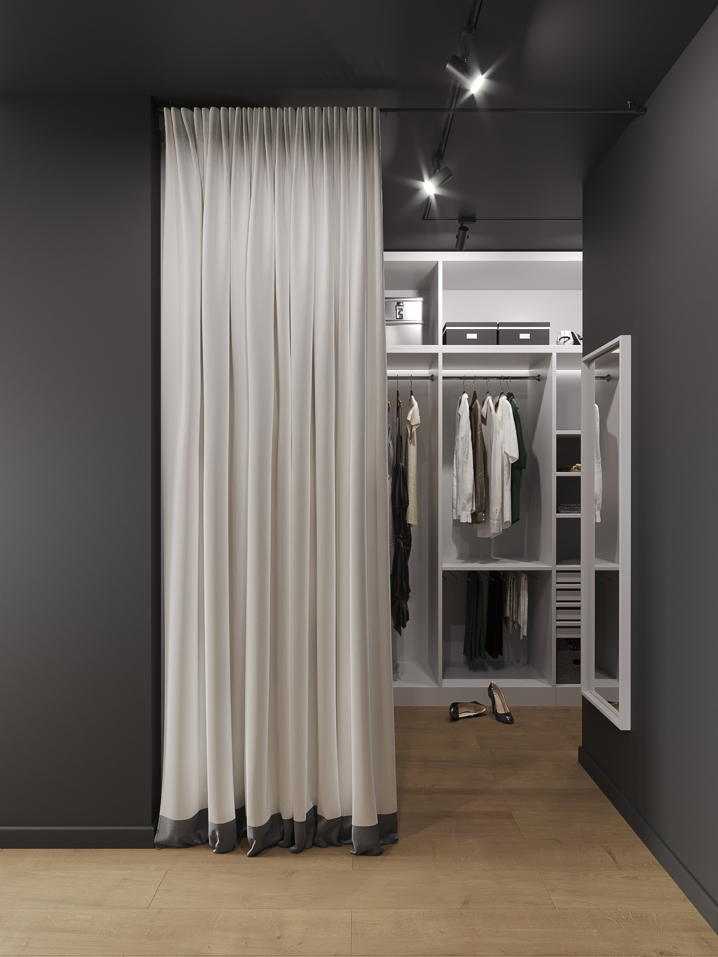 Площадь квартиры 120 кв.м. После перепланировки были организованы большая кухня-гостиная, мастер-спальня, детская, кабинет и большая ванная. Также я избавилась от длинного коридора. На его месте были оборудованы кладовая и гардеробная в мастер-спальни.