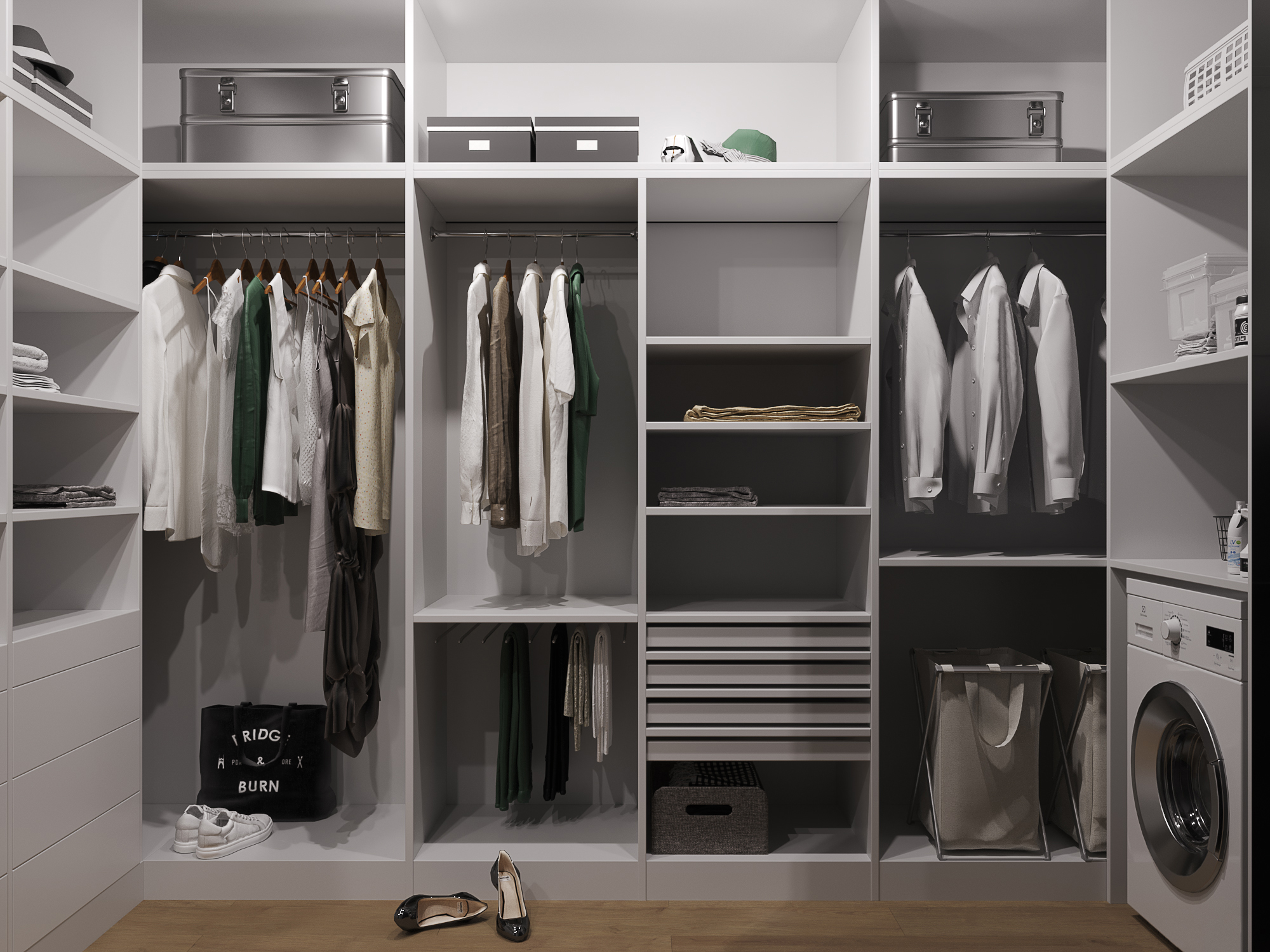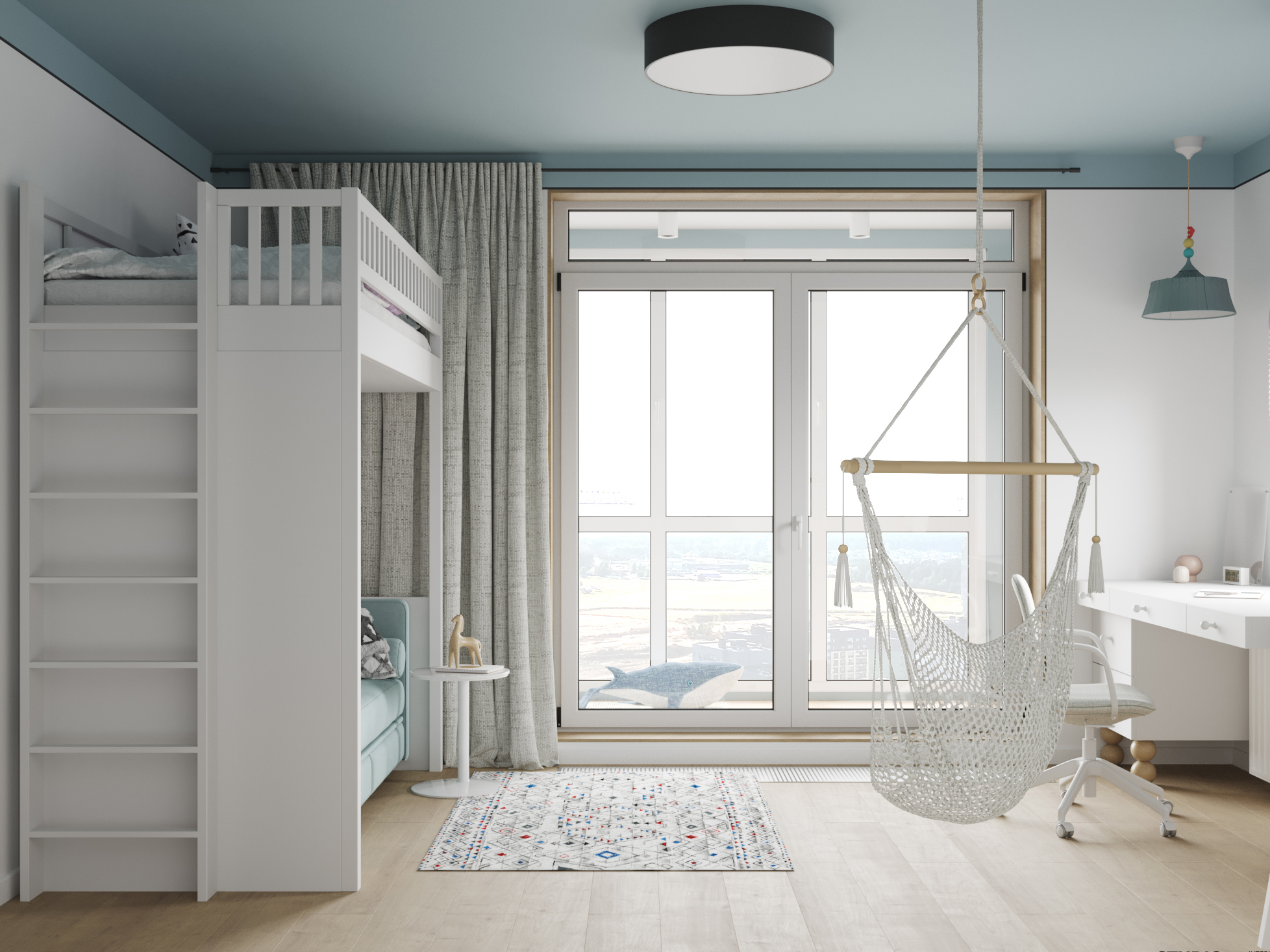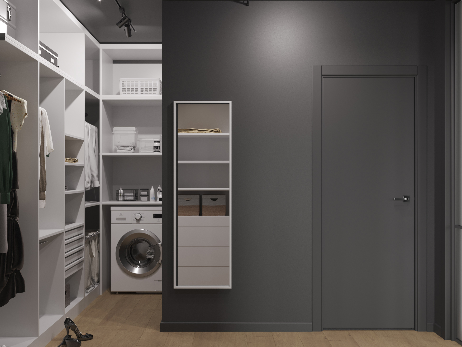Площадь квартиры 120 кв.м. После перепланировки были организованы большая кухня-гостиная, мастер-спальня, детская, кабинет и большая ванная. Также я избавилась от длинного коридора. На его месте были оборудованы кладовая и гардеробная в мастер-спальни.